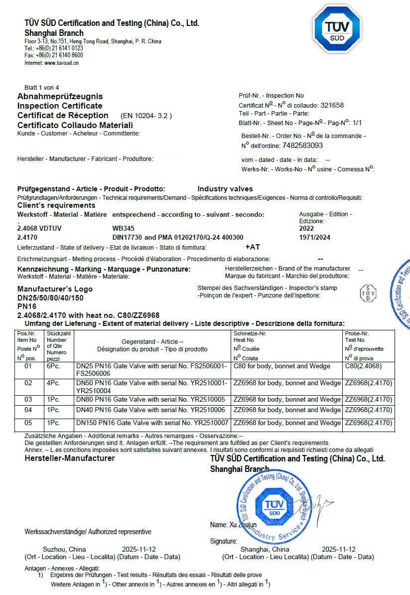 We have recently produced a large batch of valves made of special materials:
